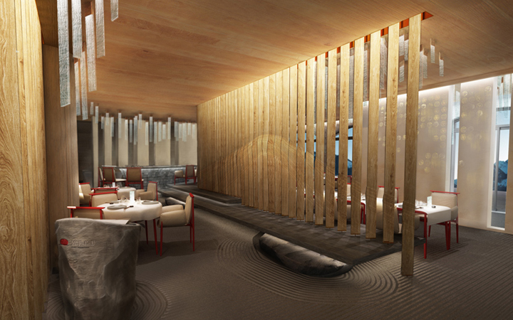 The aesthetics of the hotel is the result of a collaboration between top designers and architects of the moment. Noah Duchaufour-Lawrance has created the lines for the Japanese style restaurant, Megu, for the team of Hirsch Bedner Associates, was responsible for the interior design trying to create an environment - very "Alpine Chic." The study P49 of Bangkok has, finally, cooperating for the realization of the Six Sense Spa and the Chaletbau Matti AG for the wood construction.
